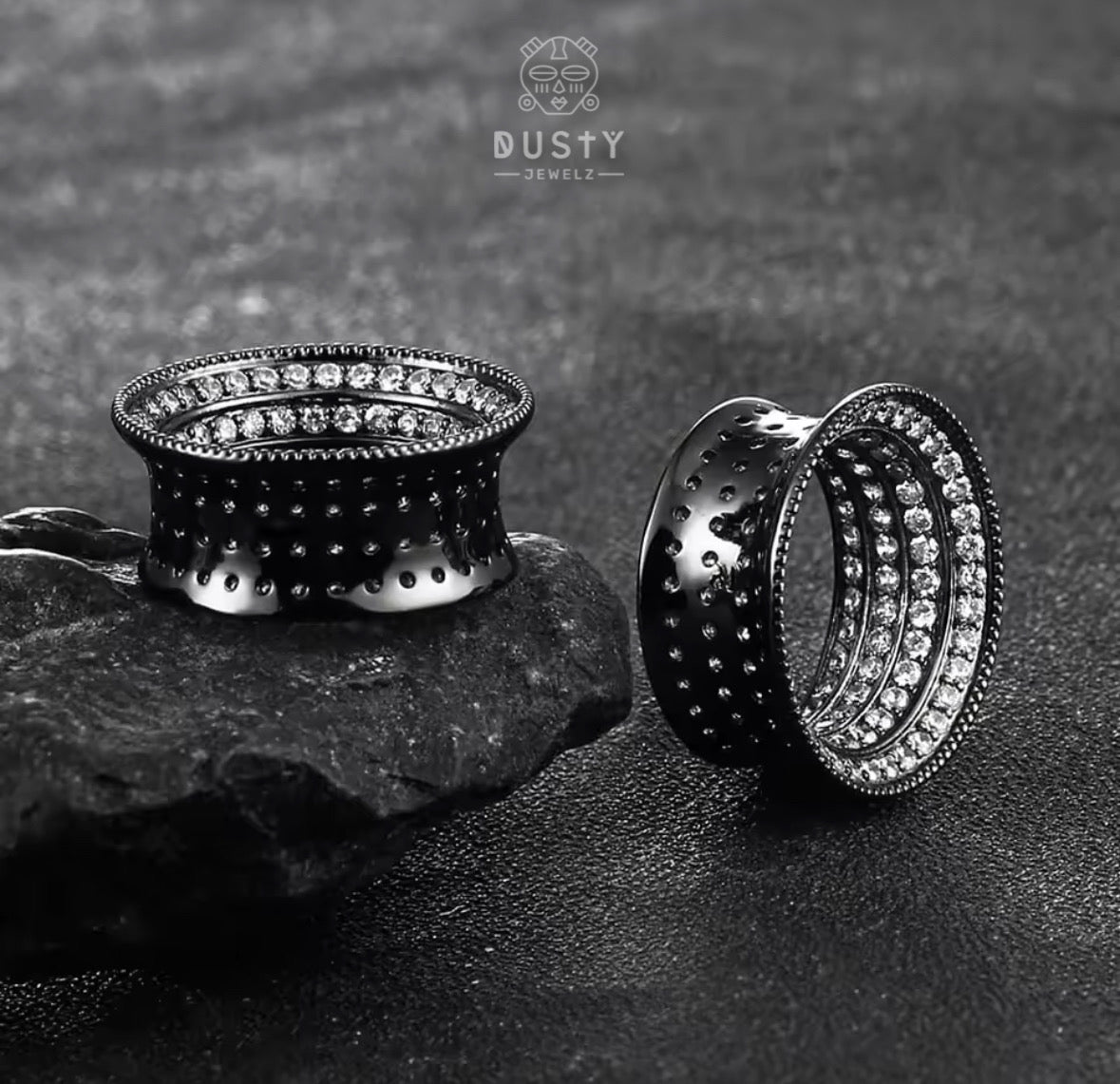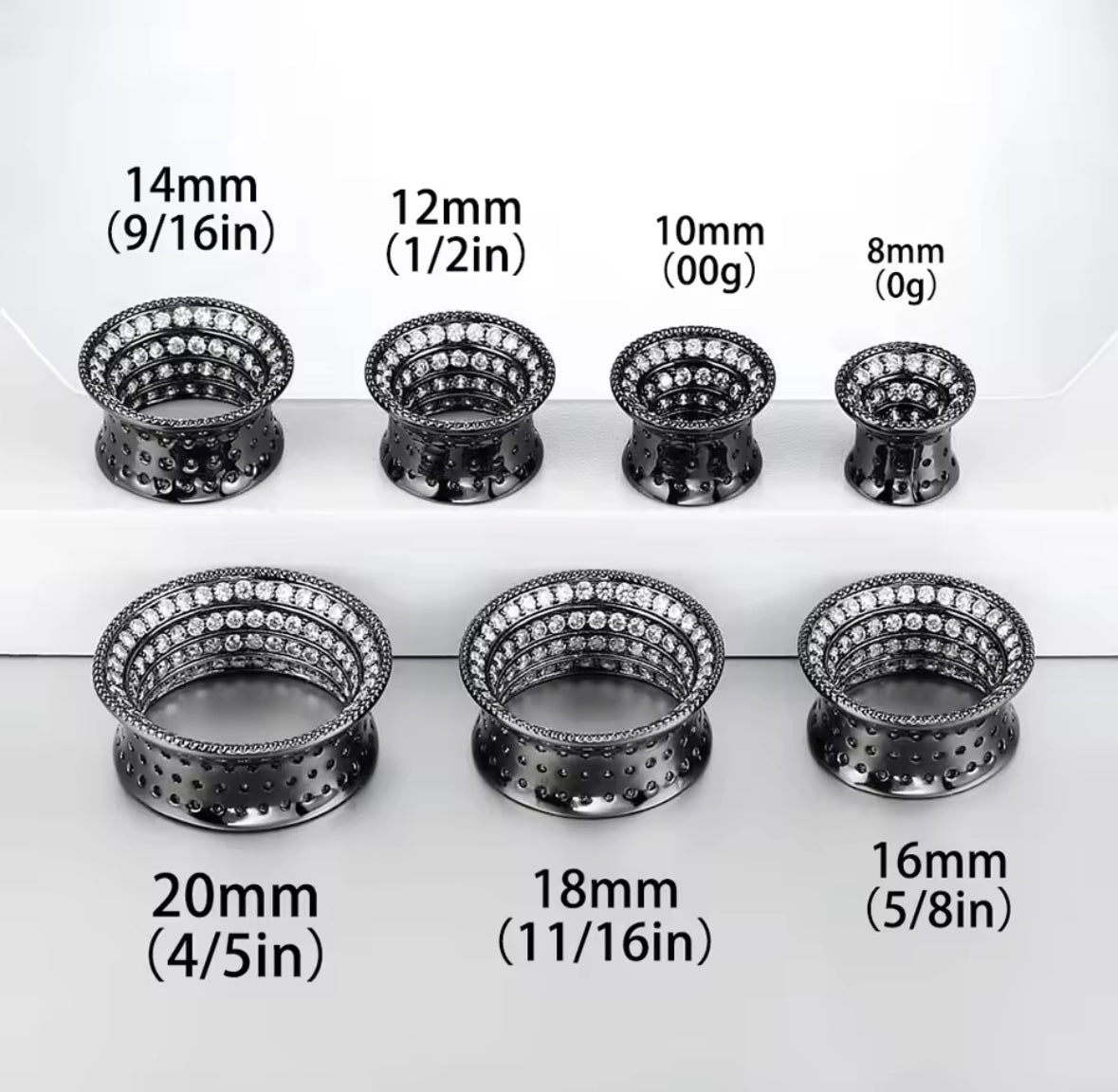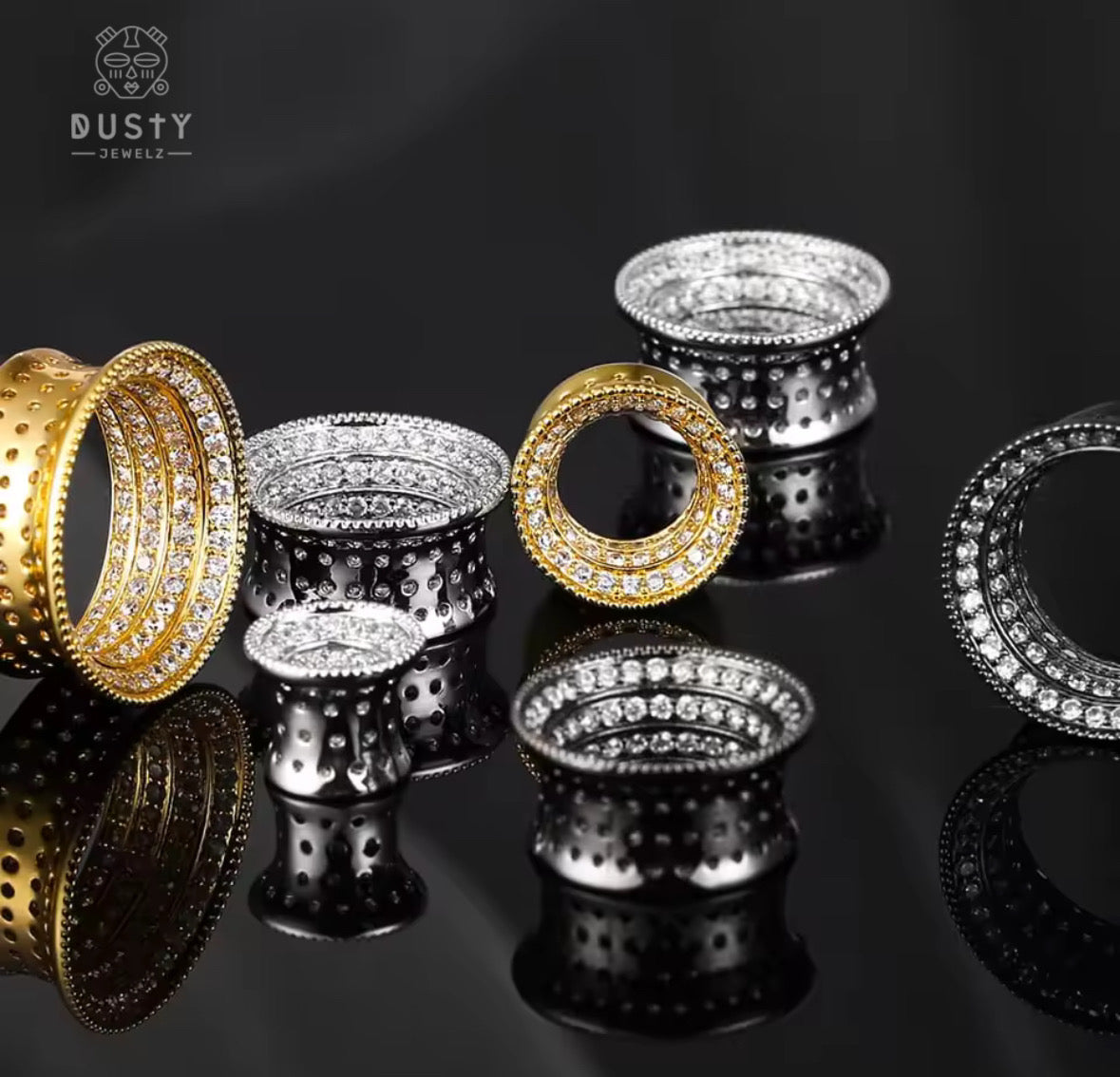 Step up your style game with our Crystal Paved Flared Stainless Steel Tunnels! Featuring a sleek circular design adorned with glimmering crystals, these tunnels sparkle with every move. Their expertly detailed outer and inner rims create a stunning layered effect, giving you an effortlessly chic and luxe look.