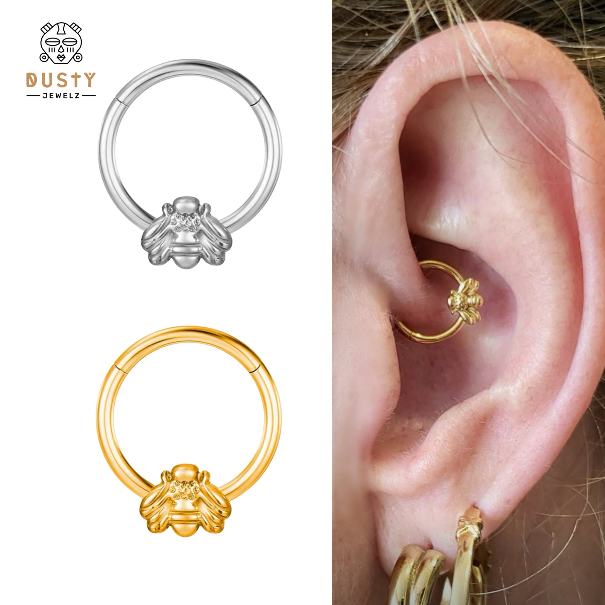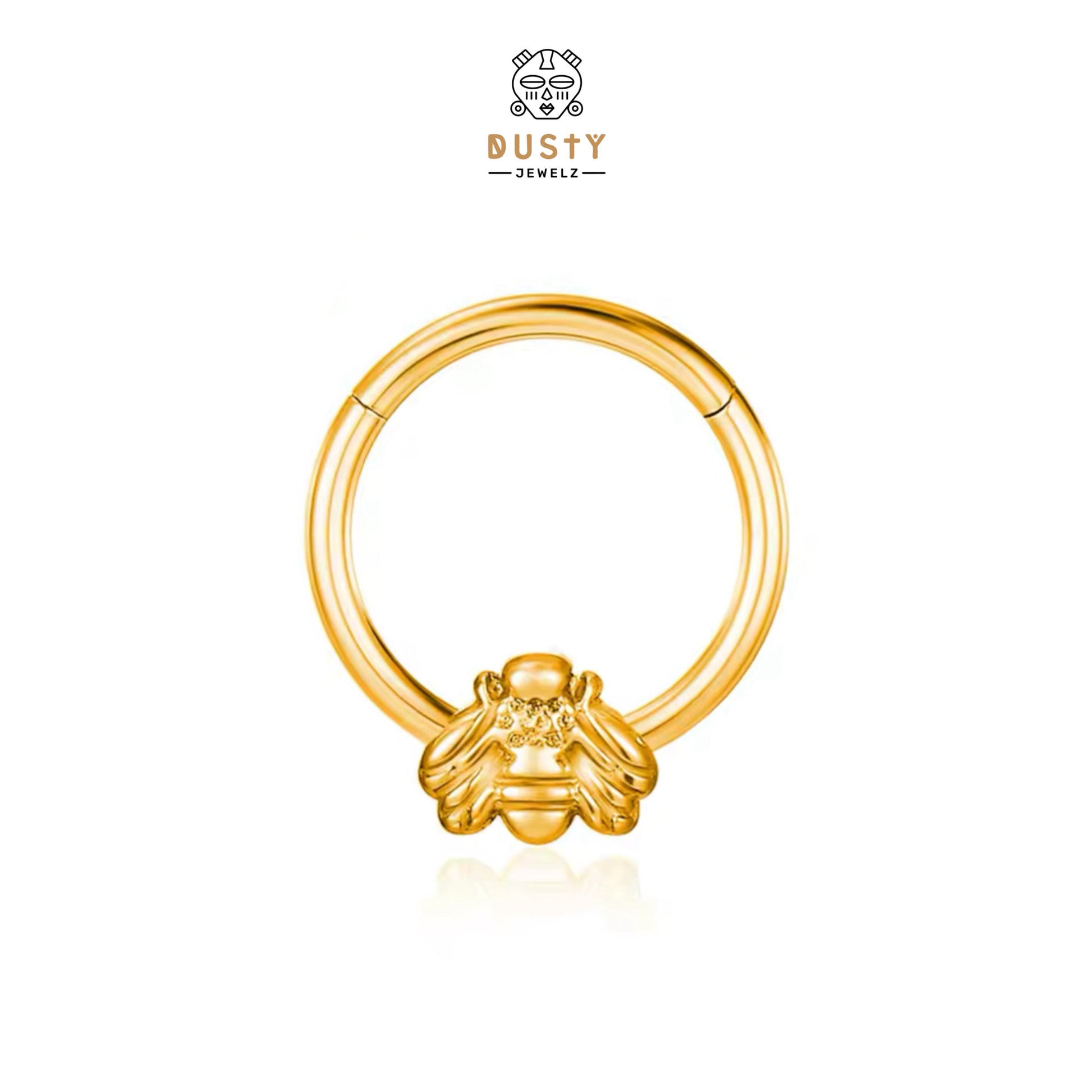 Our Bee hoops are oh-so-cute piercings with a big bite. Designed with a hinge closure for a seamless finish.