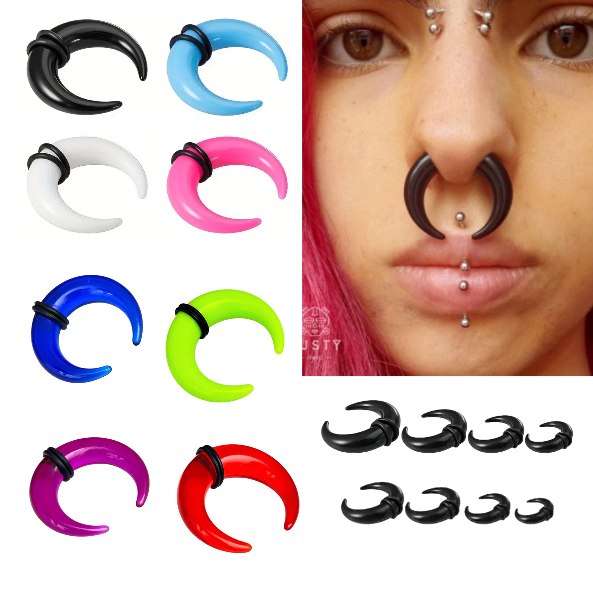 These Bull Taper Septum Pincher is a must-have for anyone looking to stretch their septum or ear lobe. Made of durable acrylic, this crescent-shaped taper comes in vibrant colors and various sizes for a perfect fit. With its unique design, this pincher allows for a comfortable stretching experience.