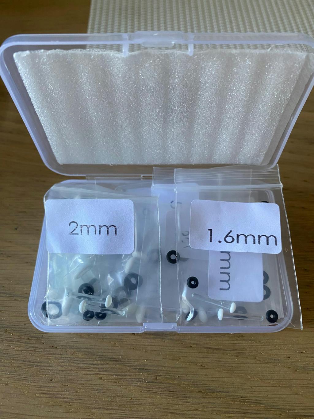 Sizes offered: 14g (1.6mm), 2g (2mm), 10g (2.5mm), 8g (3mm), 7g (3.5mm), 6g (4mm), 5g (4.5mm), 4g (5mm),3g (5.5mm), 2g (6mm)