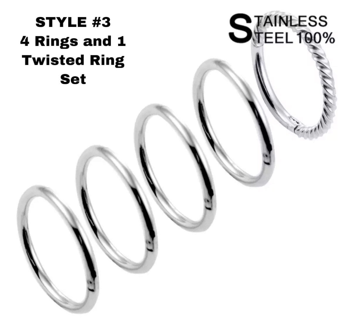* NOTE*: 1 of the 5 rings will be a either a zirconia rimmed, a twisted ring or a plain ring, you choose in the dropdown menu!!