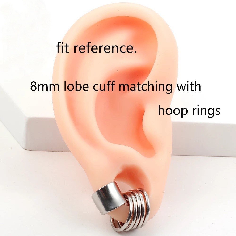 The lobe cuffs are sold separately as a pair and come in 3 different sizes: 8mm, 12mm or 16mm. These lobe cuffs look awesome combined with the stacked rings.