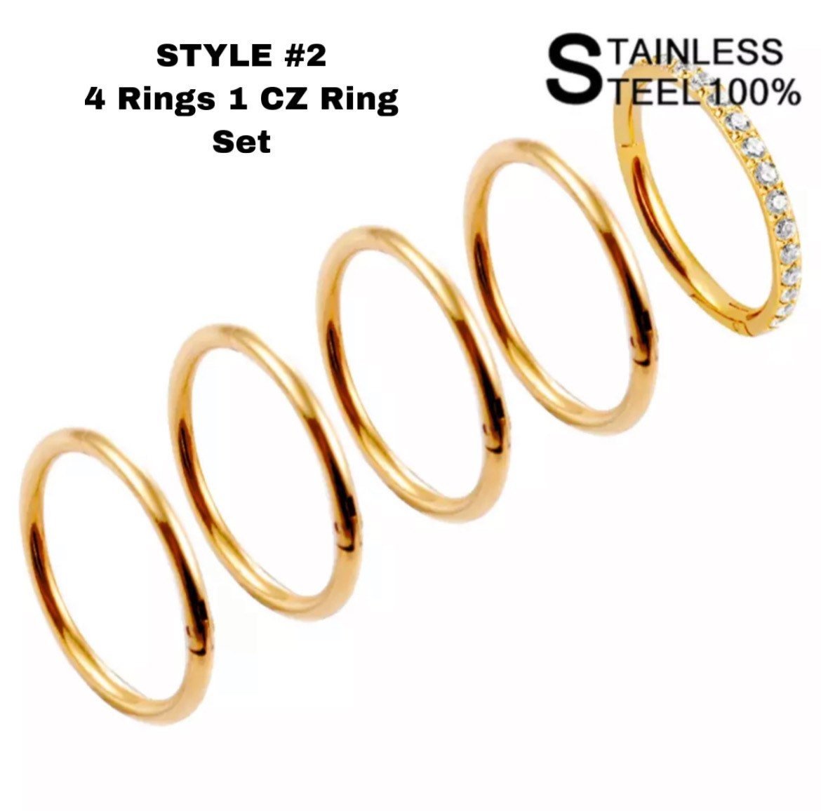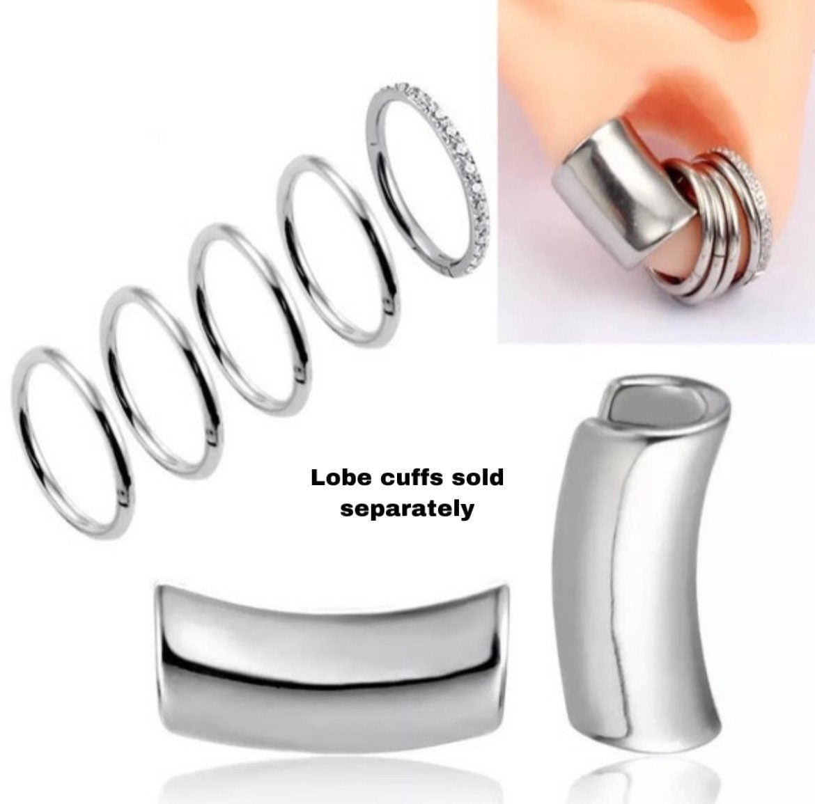 Multi Ring Stack And Lobe Cuffs | Ear Stacking Clicker Rings