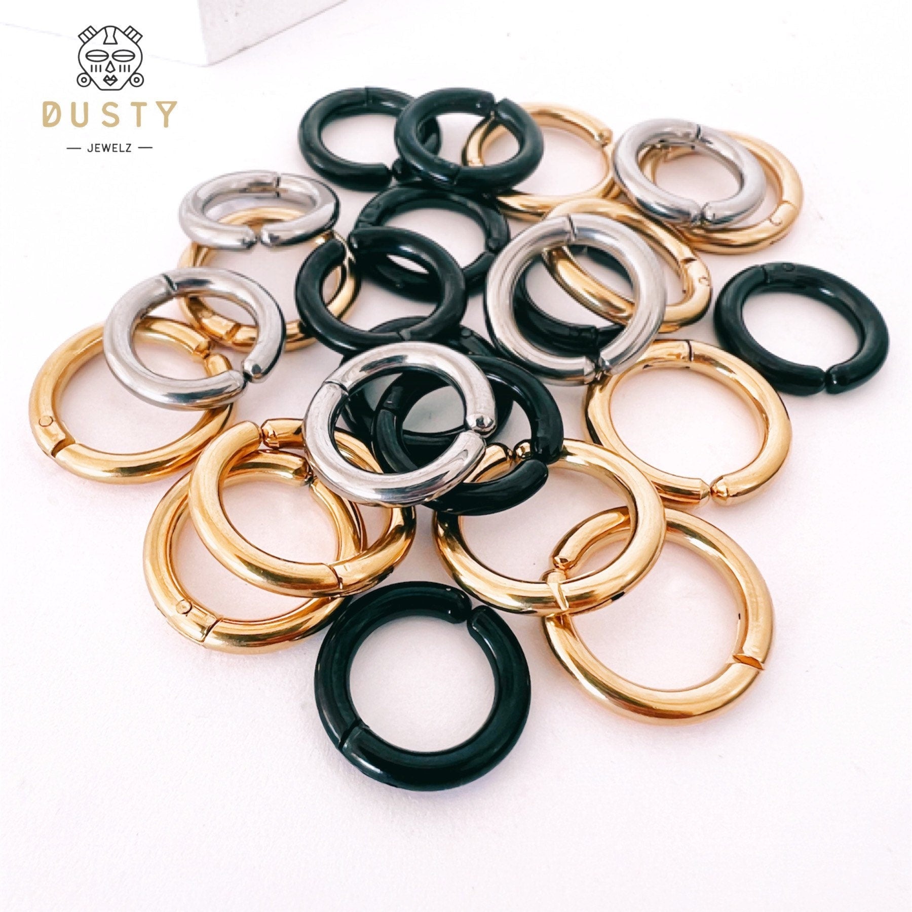 - Piercing jewellery (earrings, clickers, threadless ends, flat back posts)